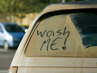 wash meって誰かが落書きしてくよ.(単に汚い所に指で