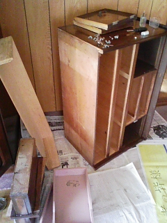 古く安い家具でしたので、これをバラすのは割りと簡単でした。