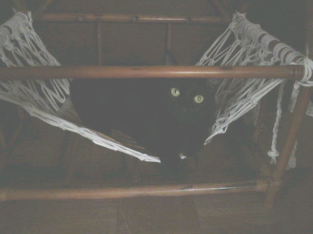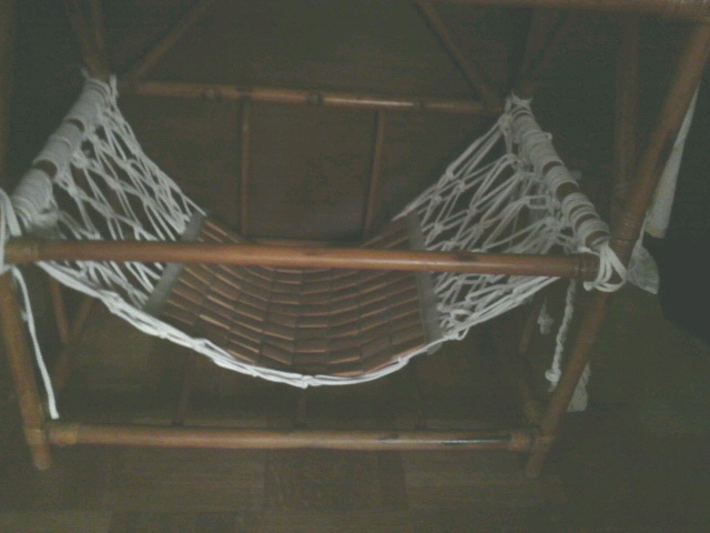 籐の箪笥の骨組みですが、それを利用して猫のハンモックを作りました。
