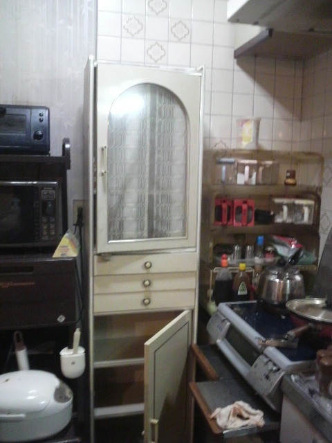 昨年、地震のあと、背の高い家具はどうにかしたつもりでしたが、キッチンは母の領域であったため、この棚だけはこのままでした。