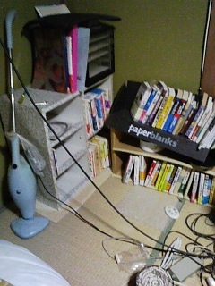 雑誌、電気用品の箱が散乱。